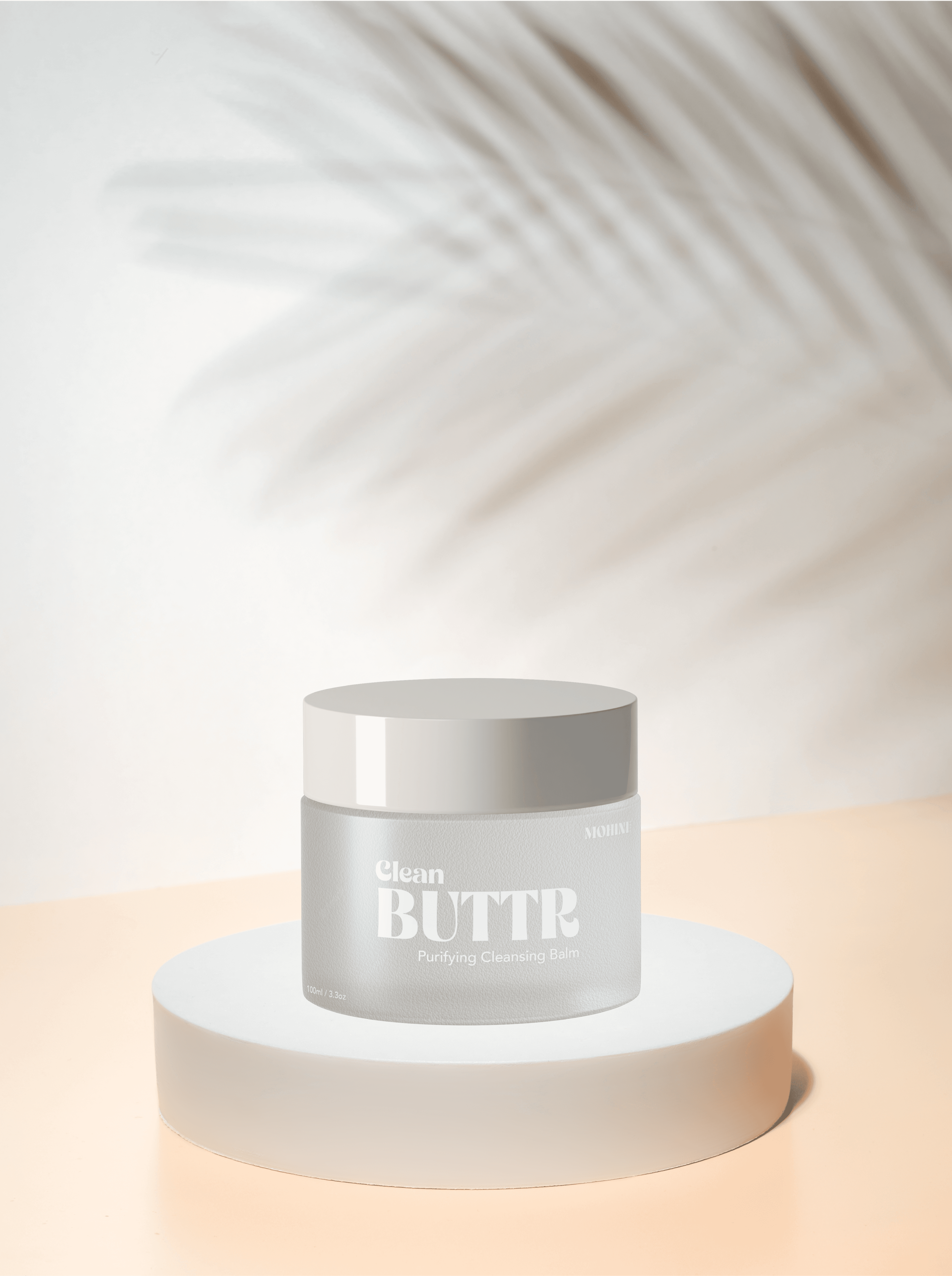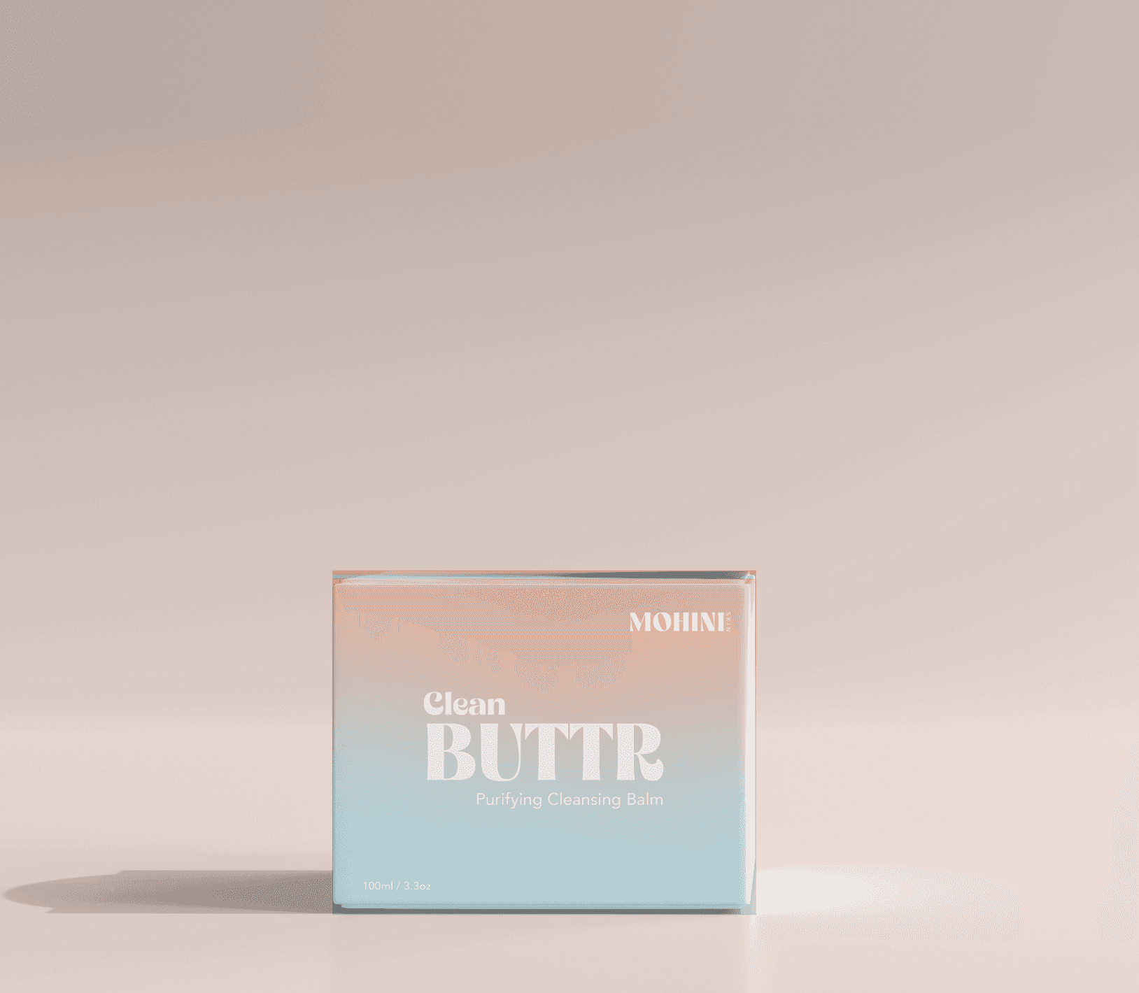 Developed the packaging design for Mohini Beauty Co.'s hero skincare product, Clean BUTTR. Explored two distinct directions — a minimal frosted glass aesthetic and a soft peach-to-aqua gradient — and delivered print-ready dielines for production along with 3D mockups for marketing use.